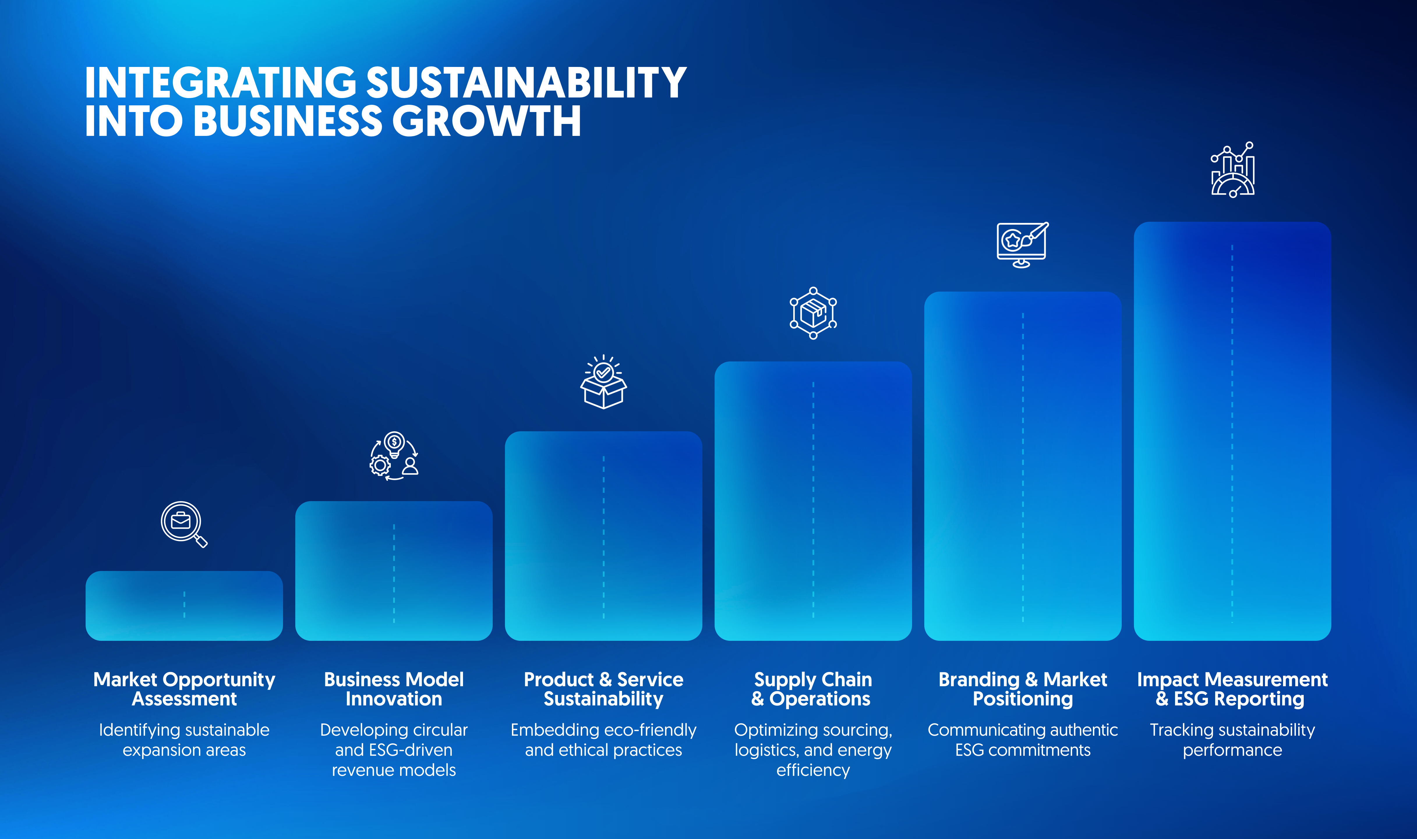 Our ESG-Aligned Growth service provides a structured framework for integrating sustainability into business expansion.
